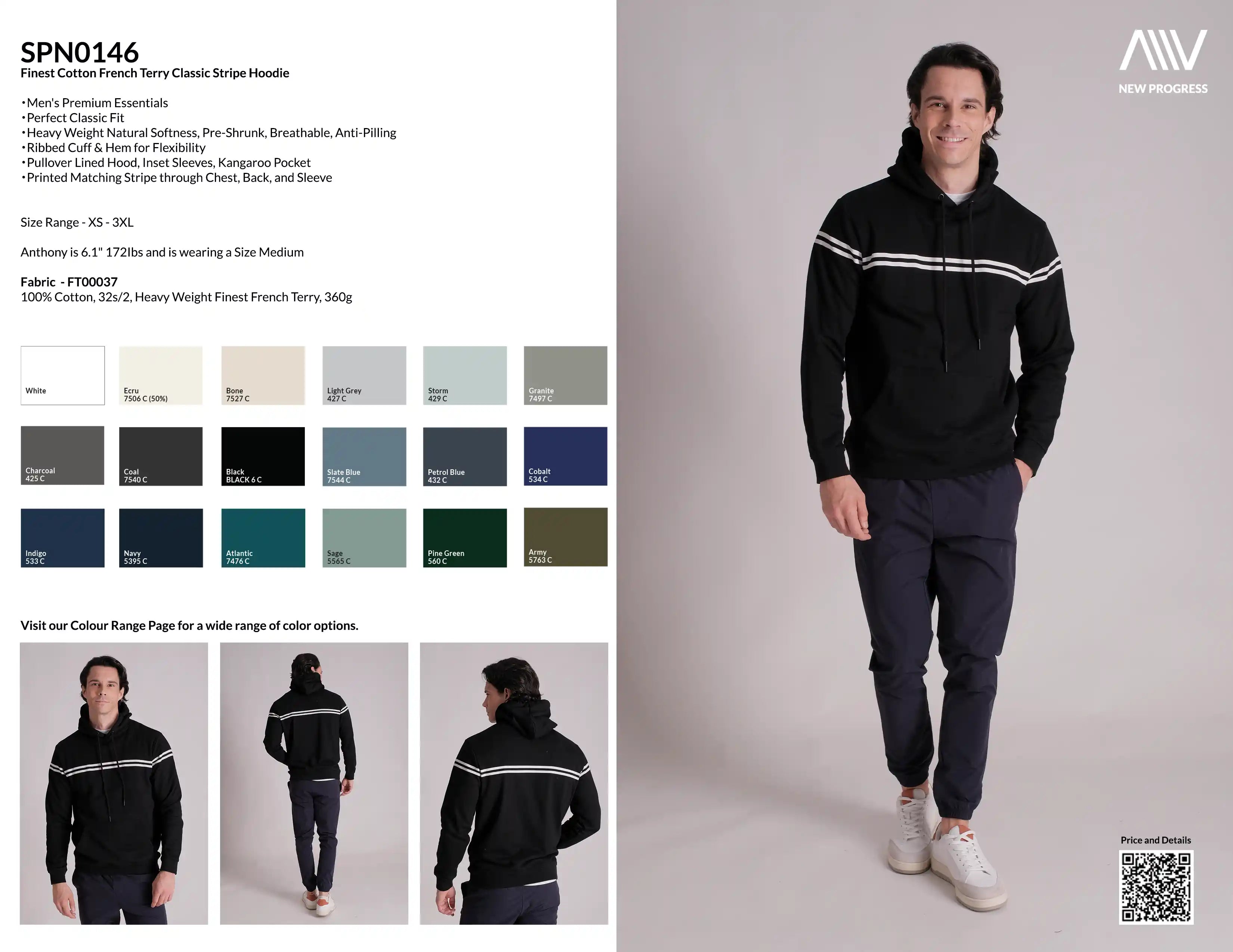 - 100% Cotton, 32s/2, Heavy Weight Finest French Terry, 360g