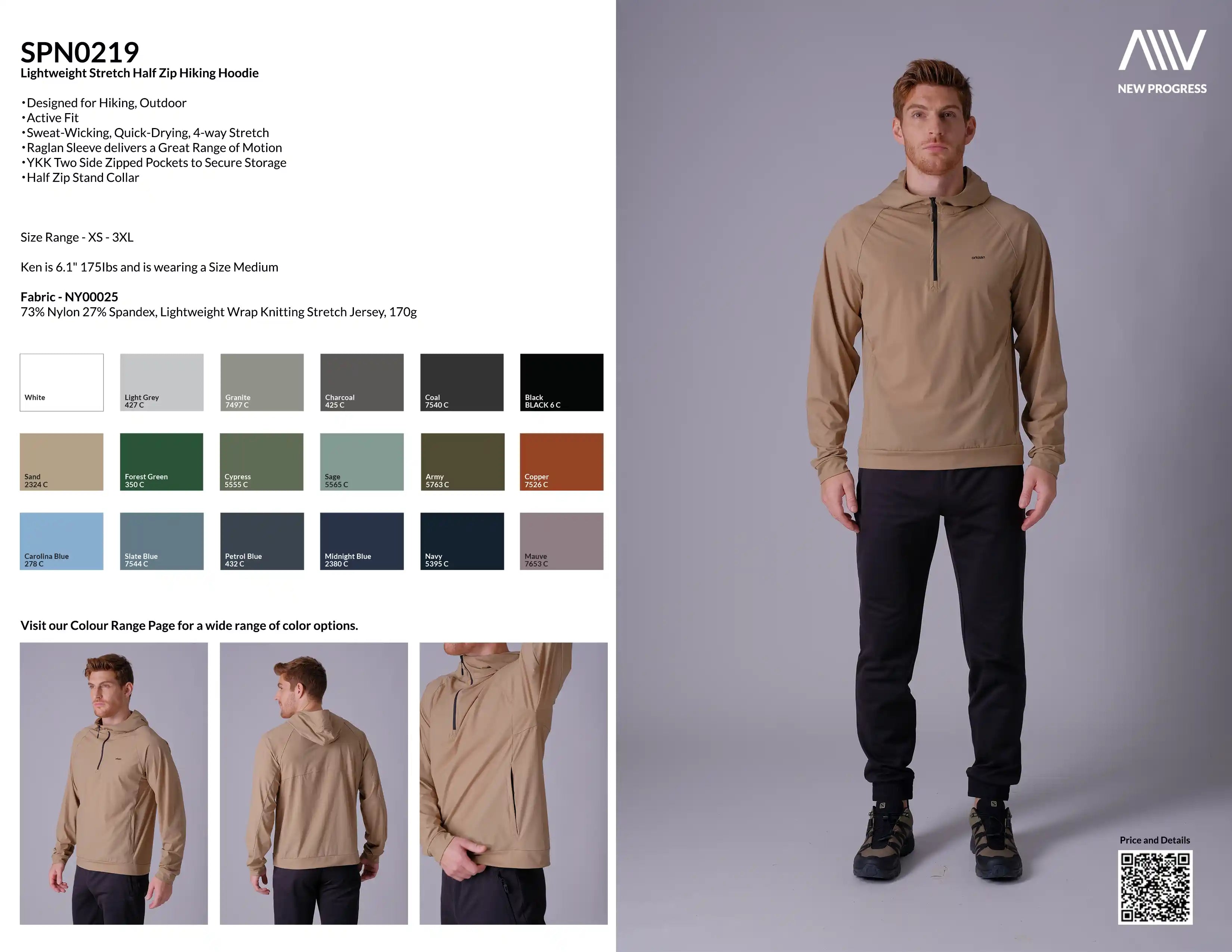 SPN0219 - Lightweight Stretch Half Zip Hiking Hoodie - Khaki
