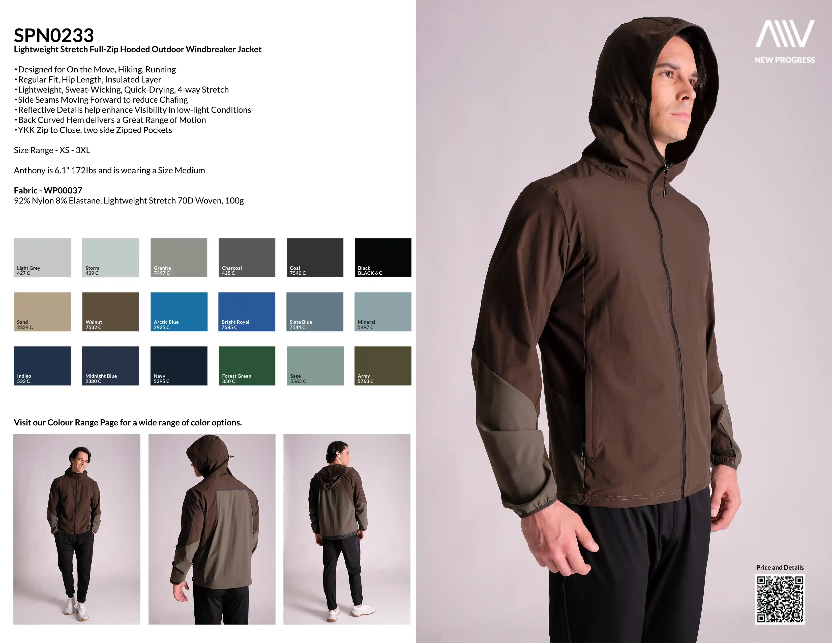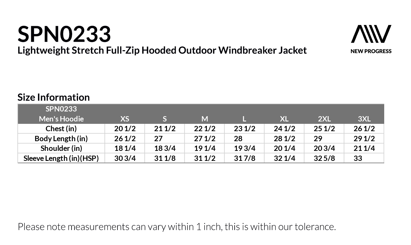 SPN0233 - Lightweight Stretch Full-Zip Hooded Outdoor Windbreaker Jacket