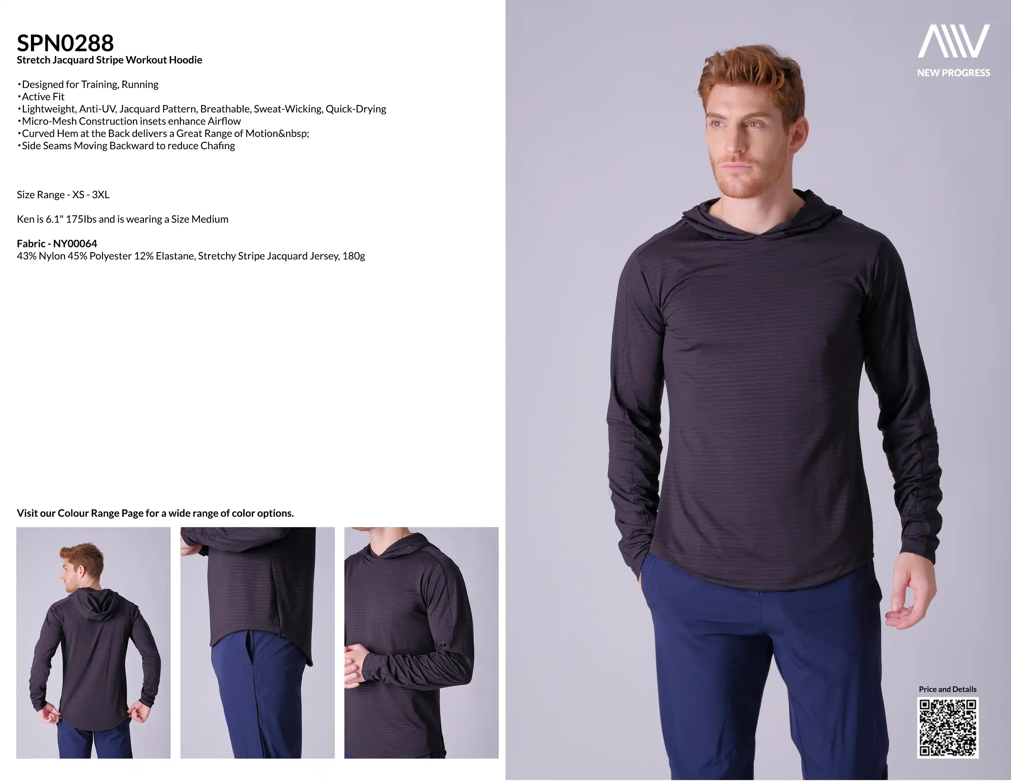 SPN0288 - Stretch Jacquard Stripe Workout Hoodie - Black