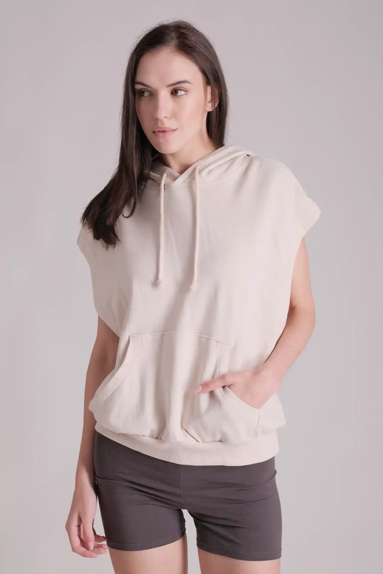 SPWN0295 - Women's Essential Relax Sleeveless Hoodie - Beige