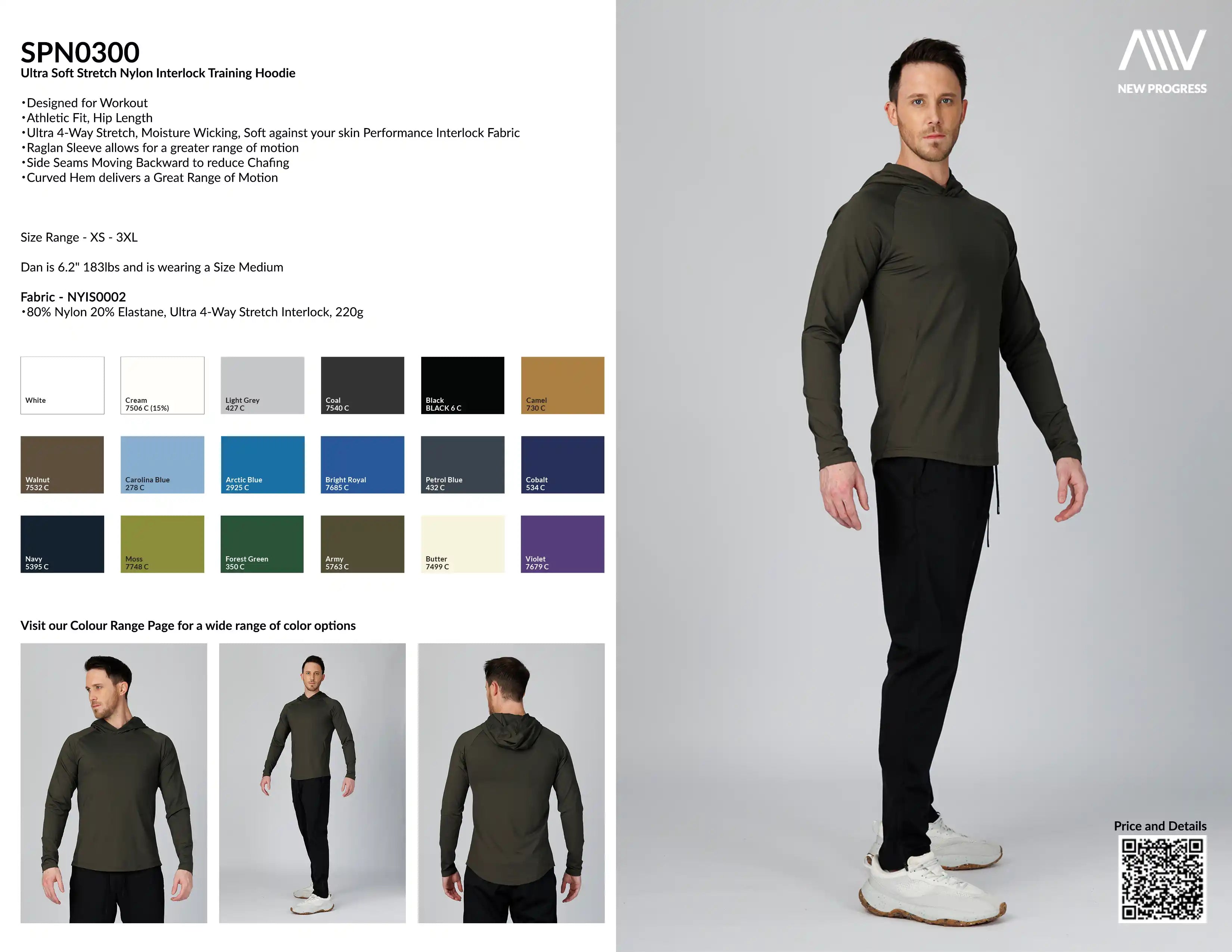 SPN0300 - Ultra Soft Stretch Nylon Interlock Workout Hoodie - Black