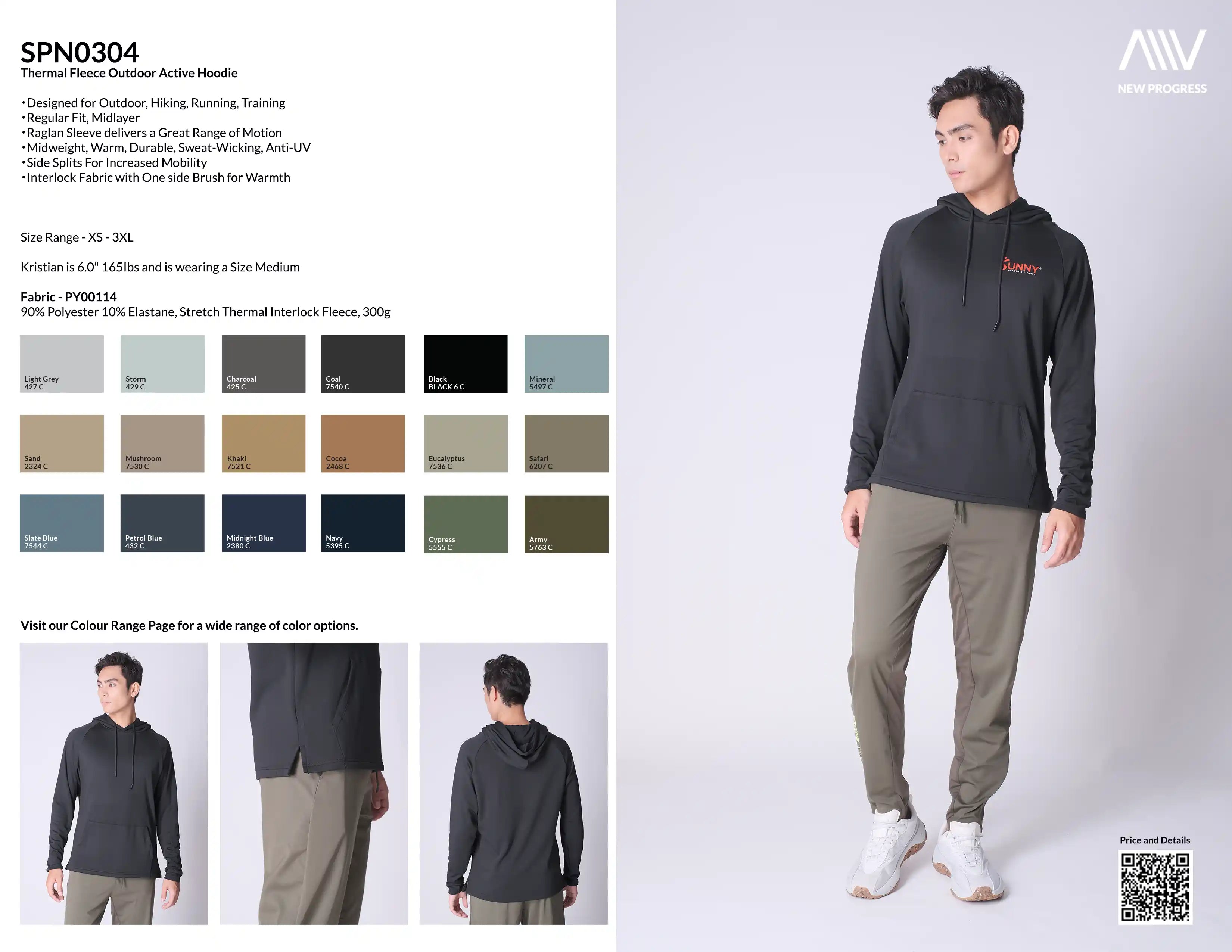 SPN0304 - Stretch Thermal Fleece Outdoor Active Hoodie - Black