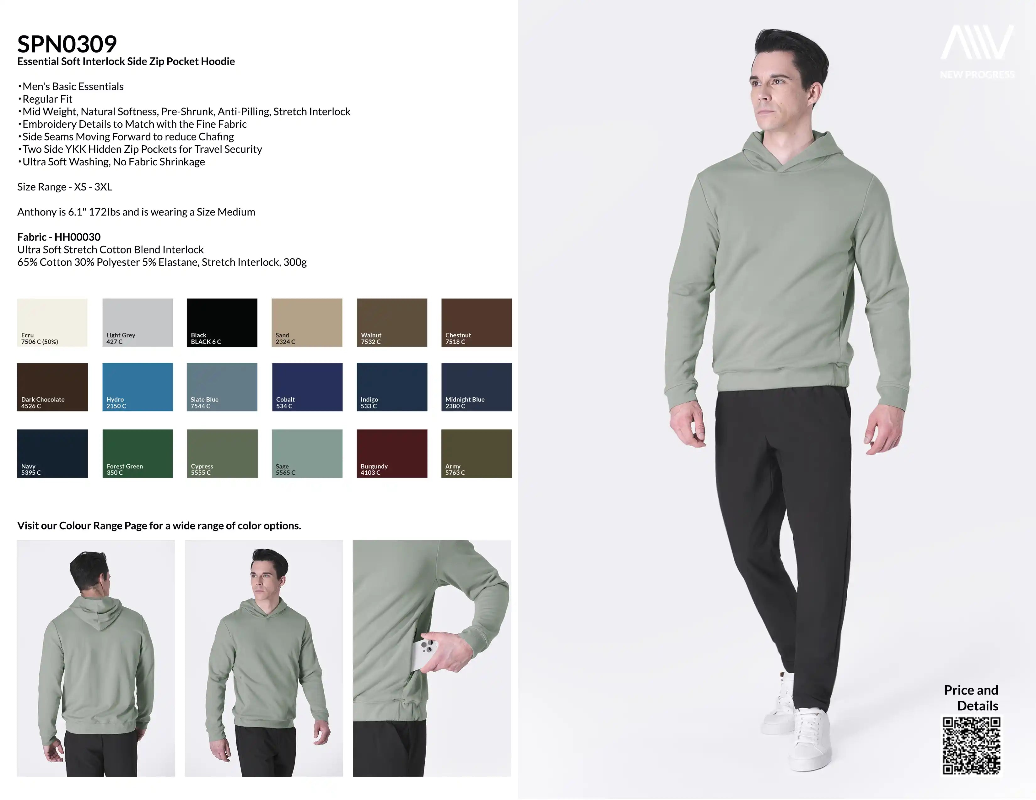 SPN0309 - Ultra Soft Interlock Side Zip Pocket Hoodie - Agave