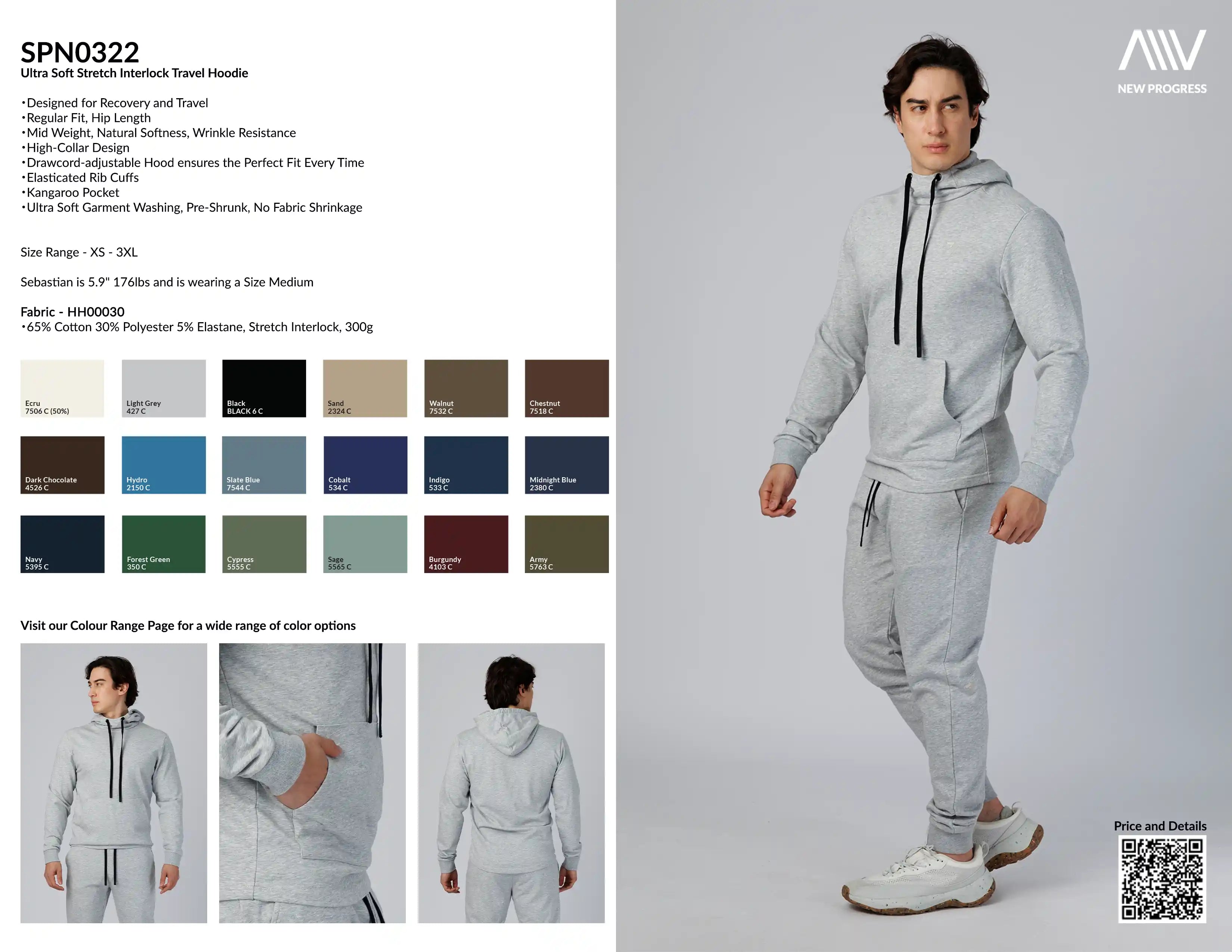 SPN0322 - Ultra Soft Stretch Interlock Travel Hoodie - Heather Grey
