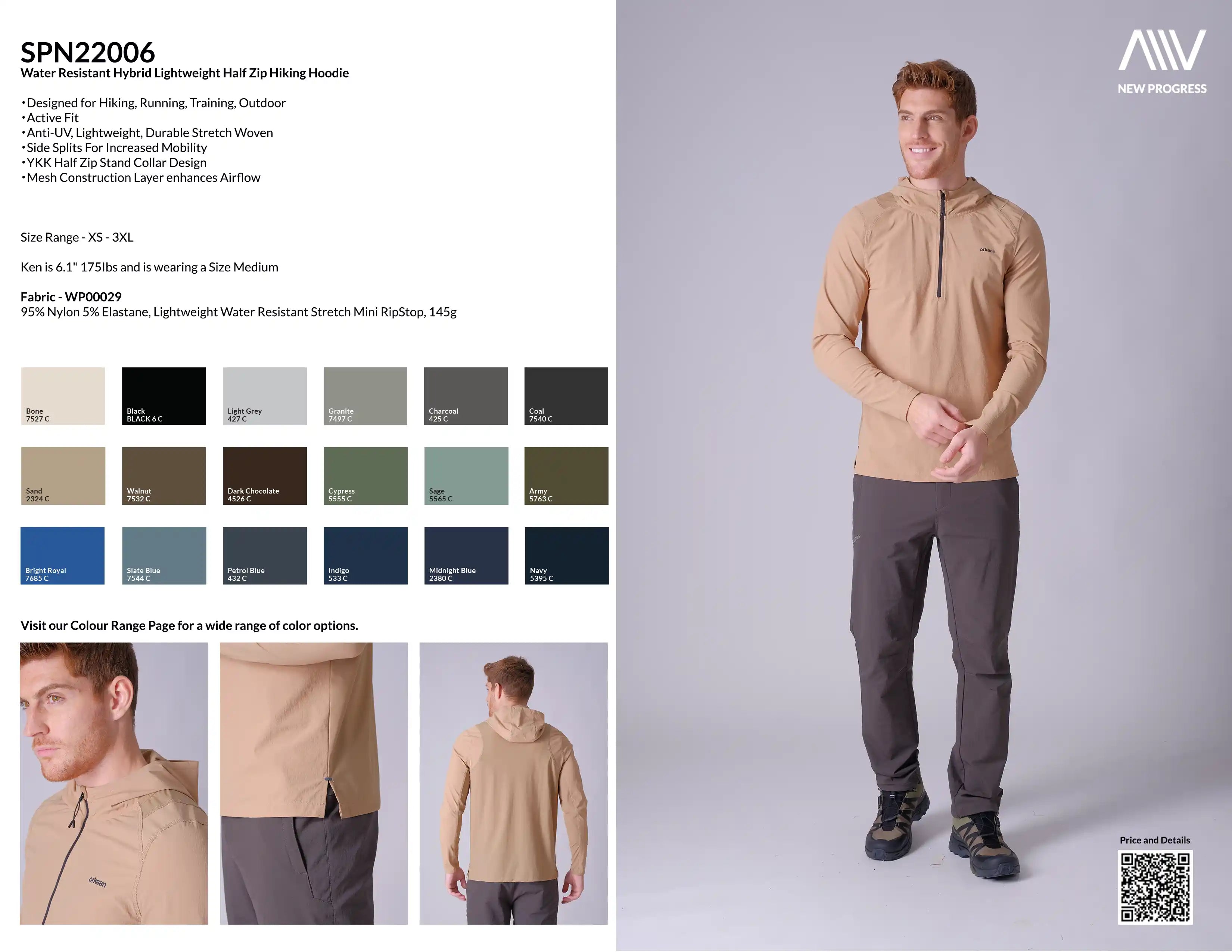 SPN22006 - Water Resistant Hybrid Lightweight Half Zip Hiking Hoodie - Khaki