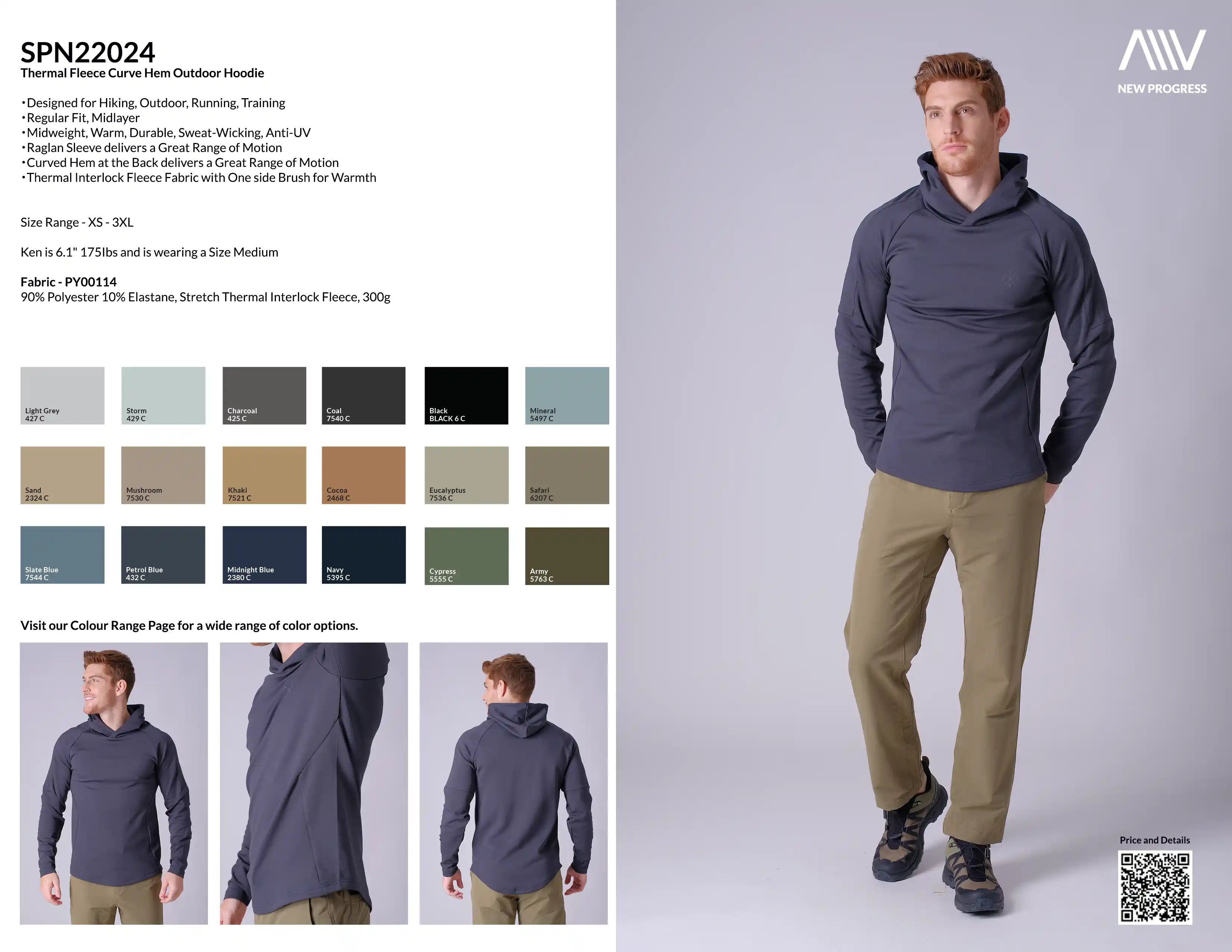 ・ 90% Polyester 10% Elastane, Stretch Thermal Interlock Fleece, 280g