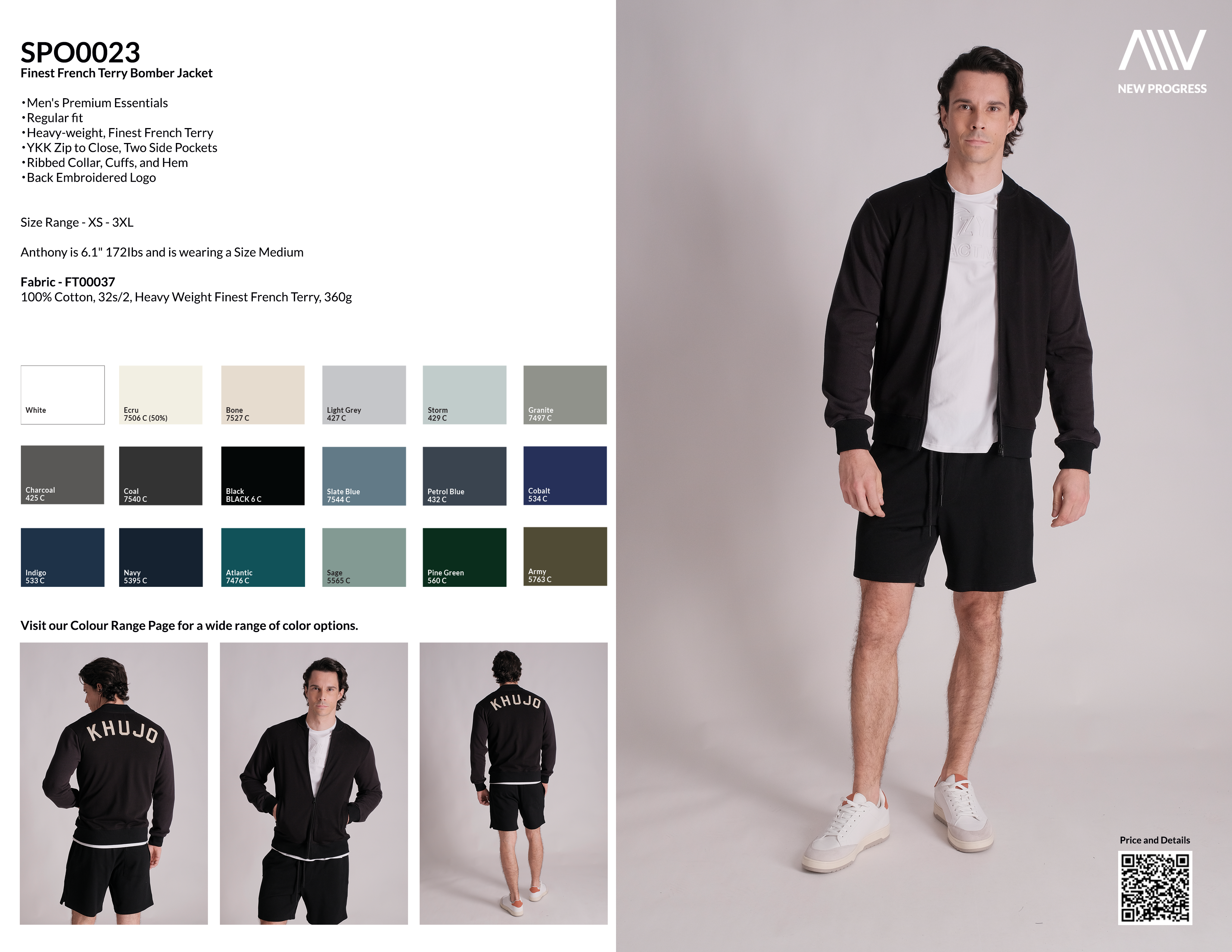 - 100% Cotton, 32s/2, Heavy Weight Finest French Terry, 360g