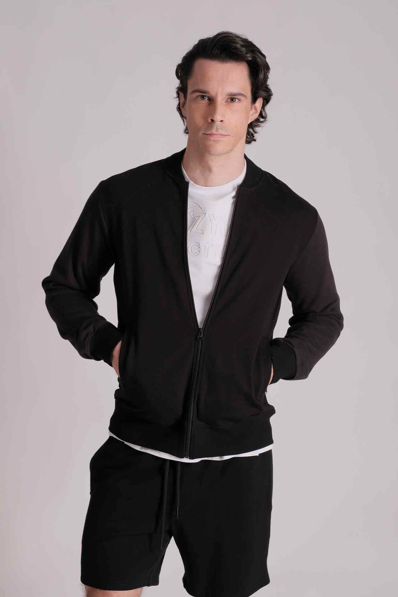 SPO0023 - Finest French Terry Bomber Jacket - Black