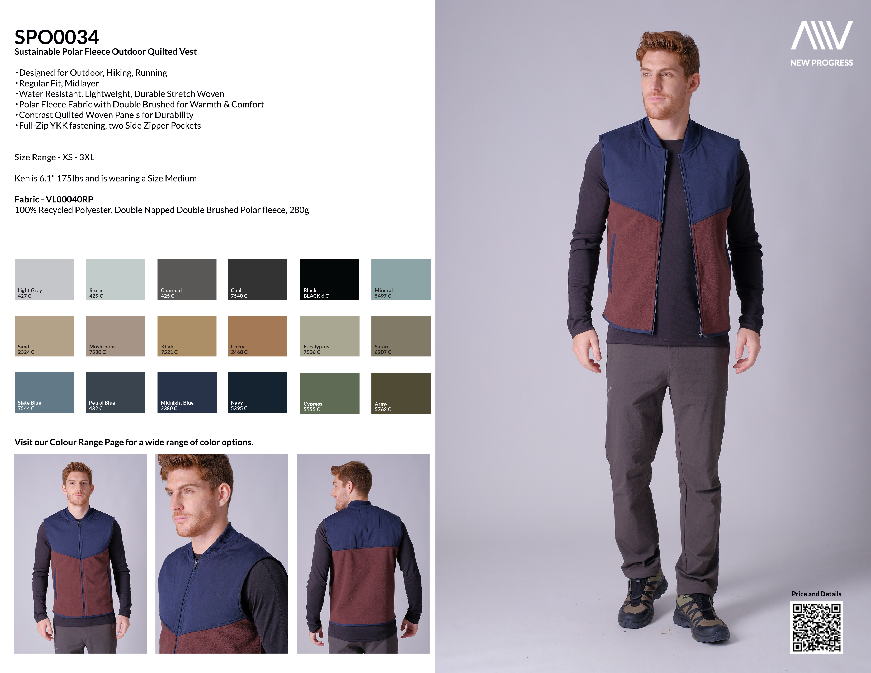 SPO0034 - Sustainable Polar Fleece Outdoor Quilted Vest - Brown/Navy