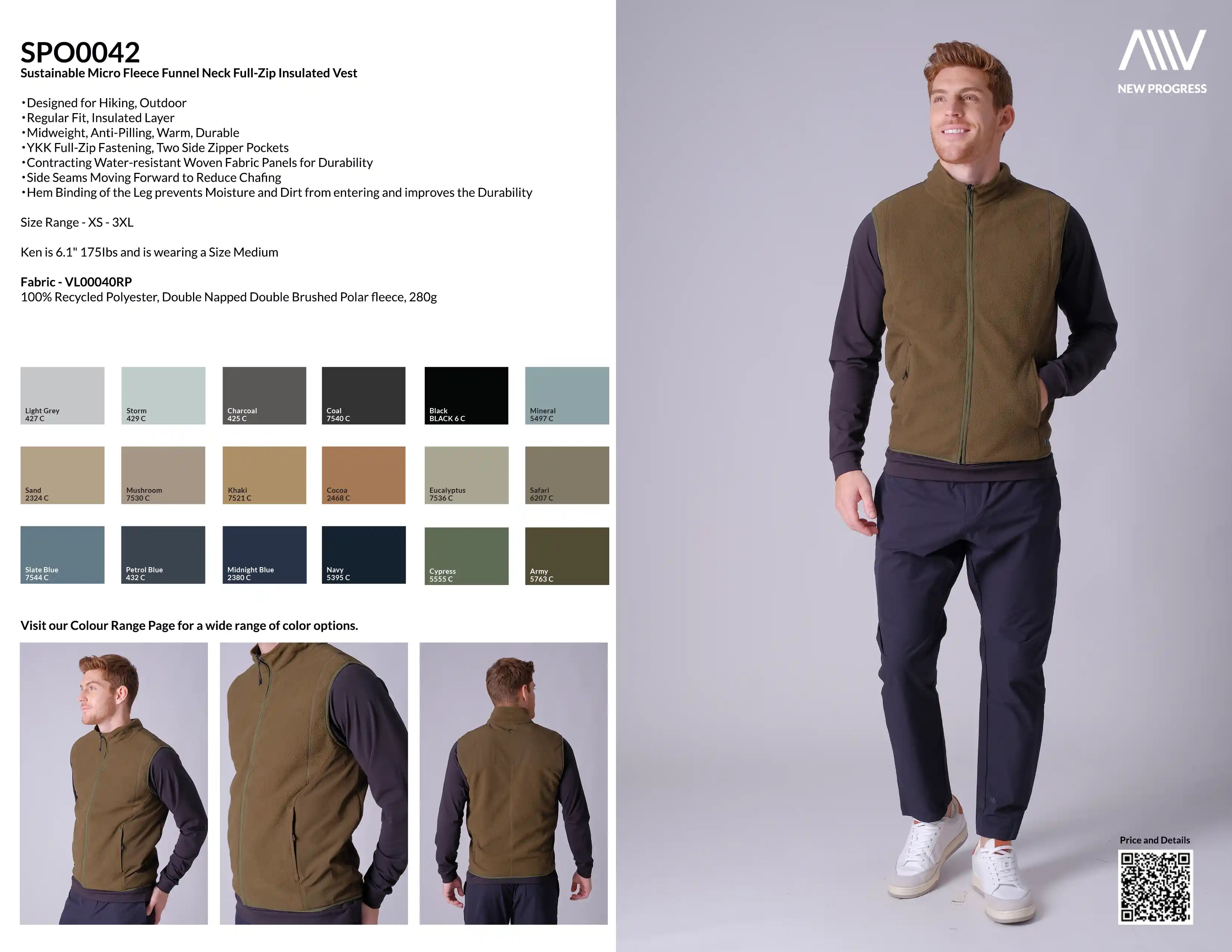 SPO0042 - Sustainable Micro Fleece Funnel Neck Full-Zip Insulated Vest - Army