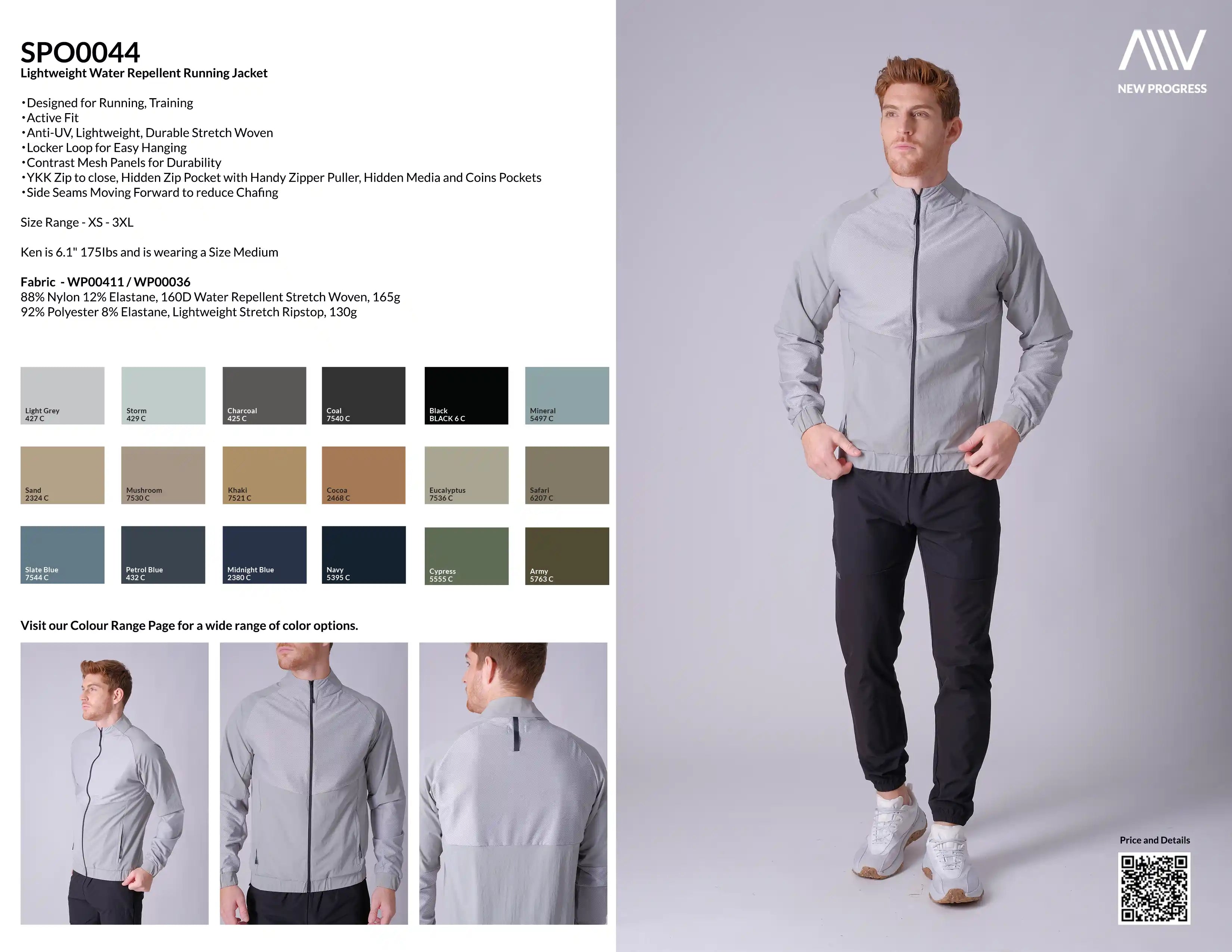 SPO0044 - Lightweight Water Repellent Running Jacket - Light Grey