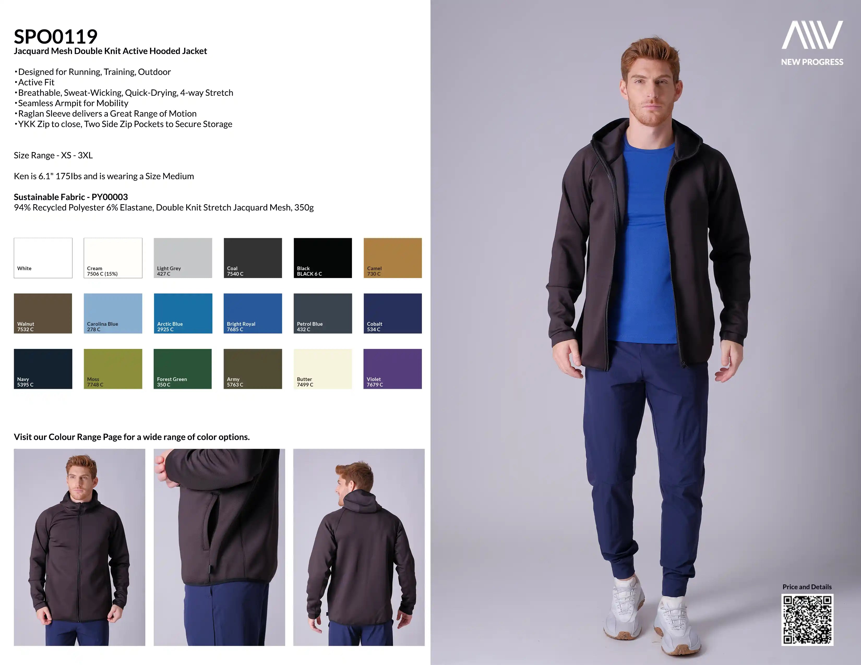 SPO0119 - Jacquard Mesh Double Knit Active Hooded Jacket - Black