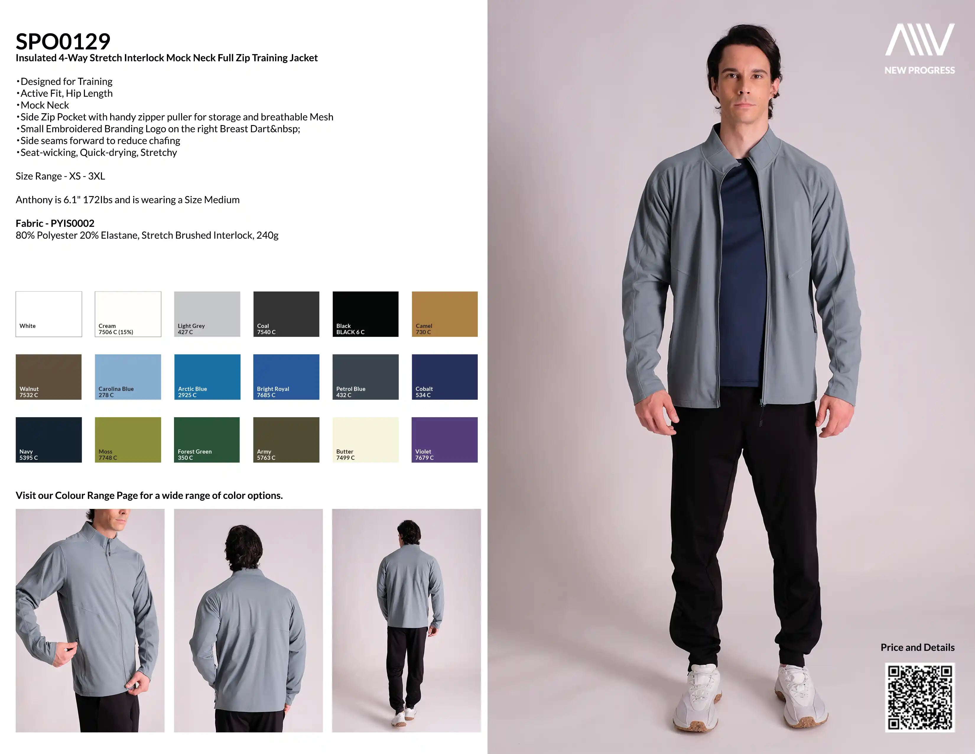SPO0129 - Insulated 4-Way Stretch Interlock Mock Neck Full Zip Training Jacket - Ash Blue