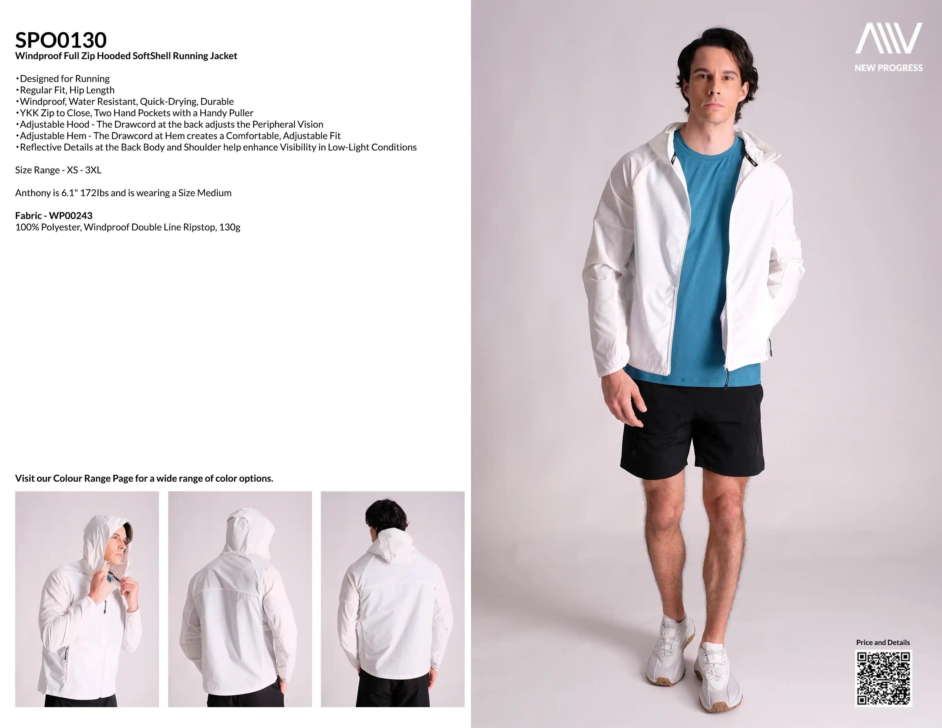 SPO0130 - Windproof Full Zip Hooded SoftShell Running Jacket - White