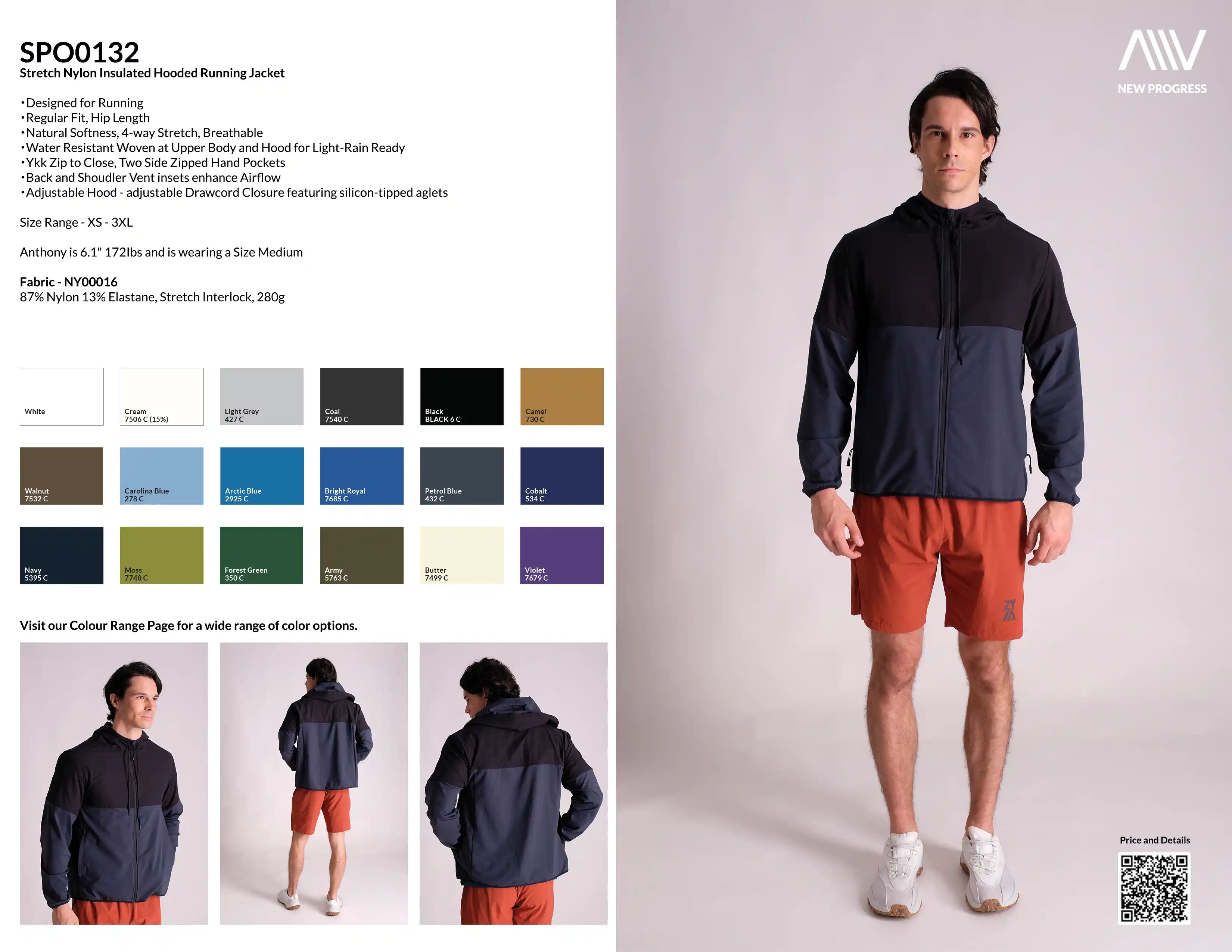SPO0132 - Stretch Nylon Insulated Hooded Running Jacket - Navy