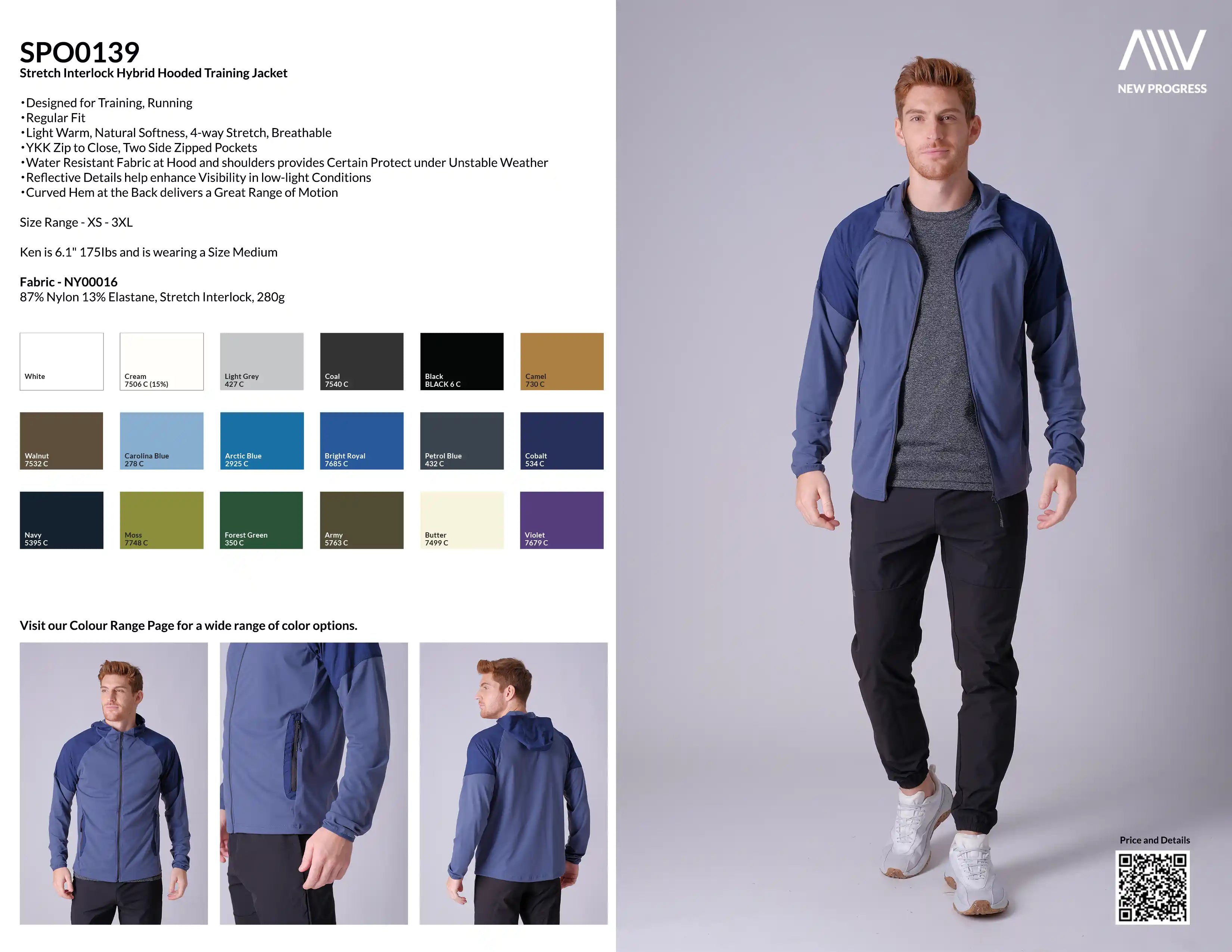 SPO0139 - Stretch Interlock Hybrid Hooded Training Jacket - Navy