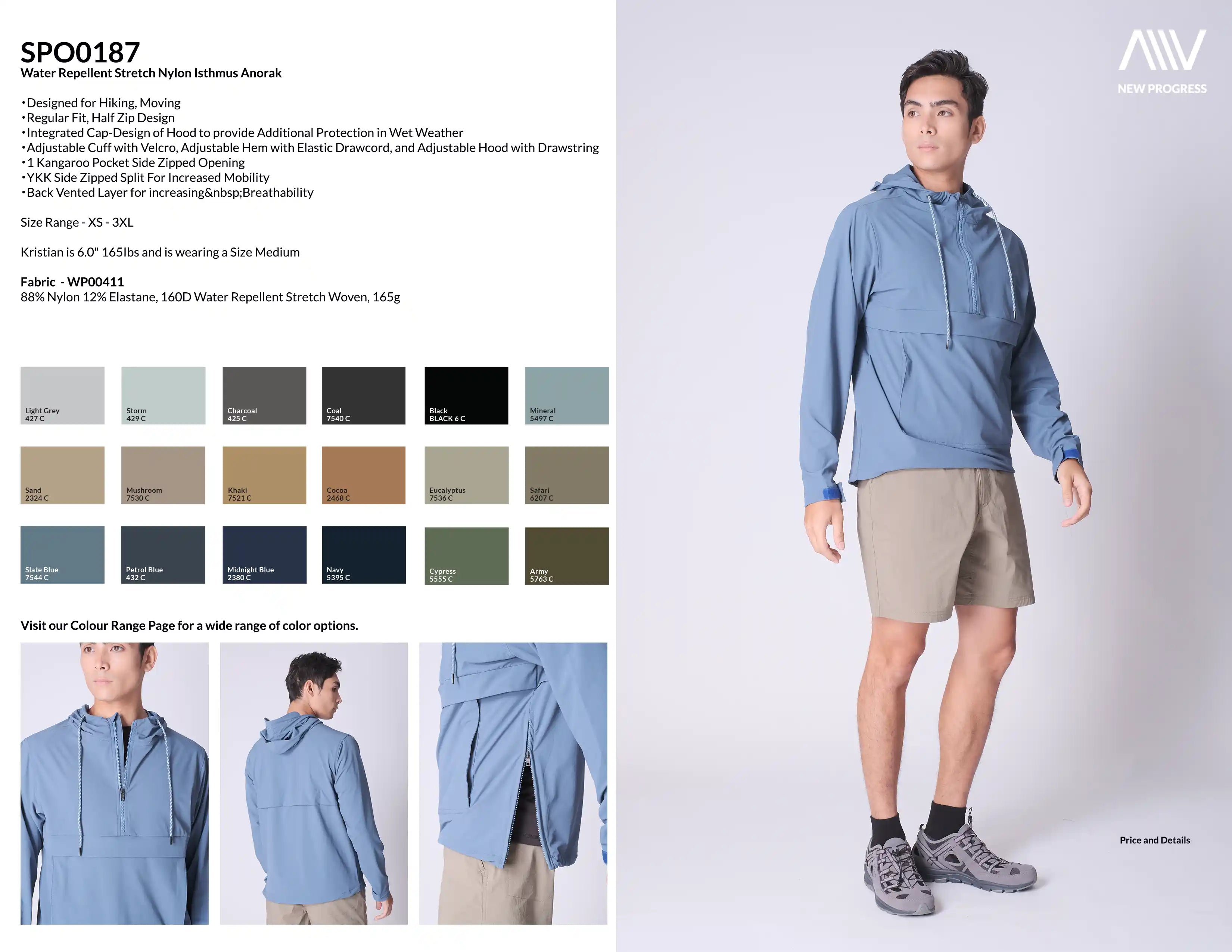 - 88% Nylon 12% Elastane, 160D Water Repellent Stretch Woven, 180g