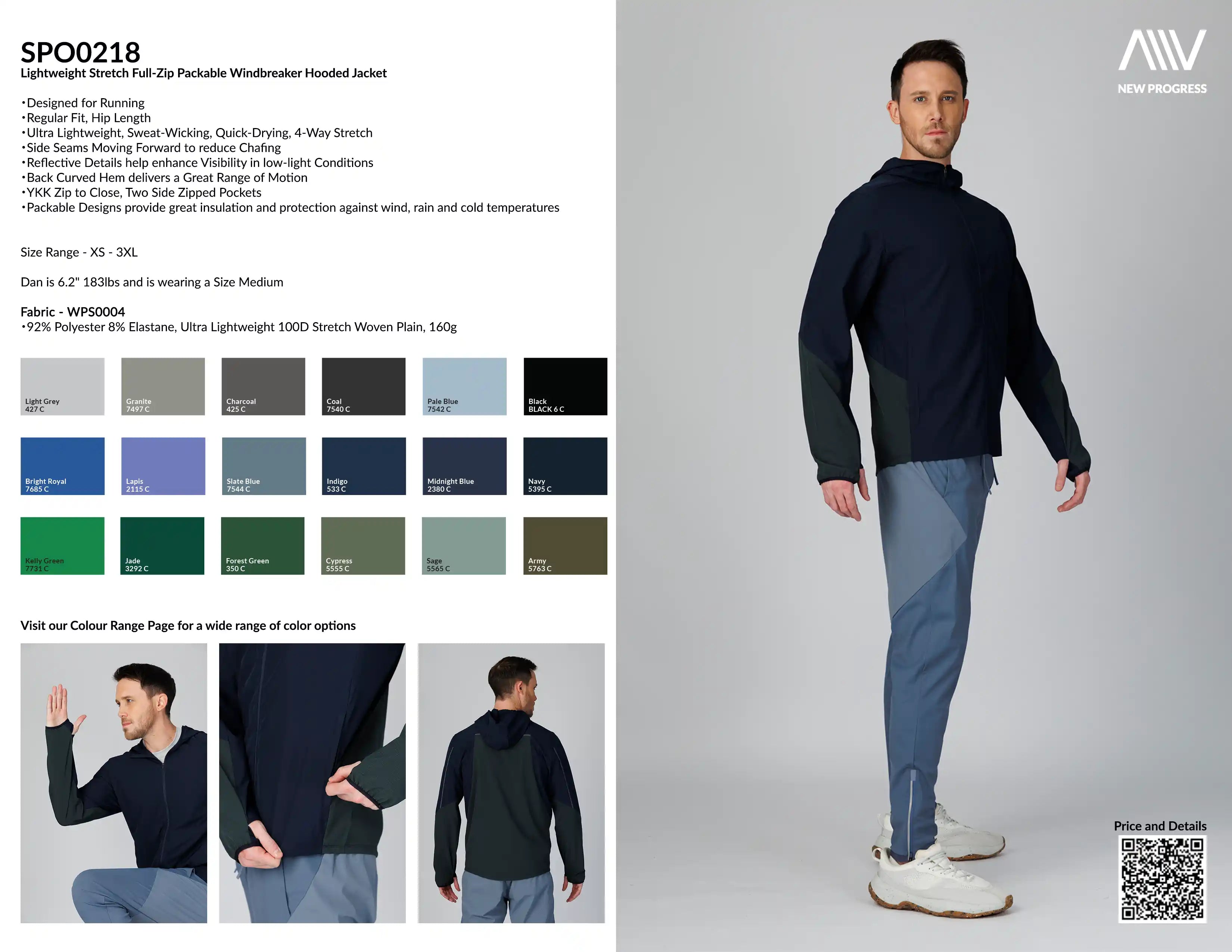 SPO0218 - Lightweight Stretch Full-Zip Packable Windbreaker Hooded Jacket - Navy