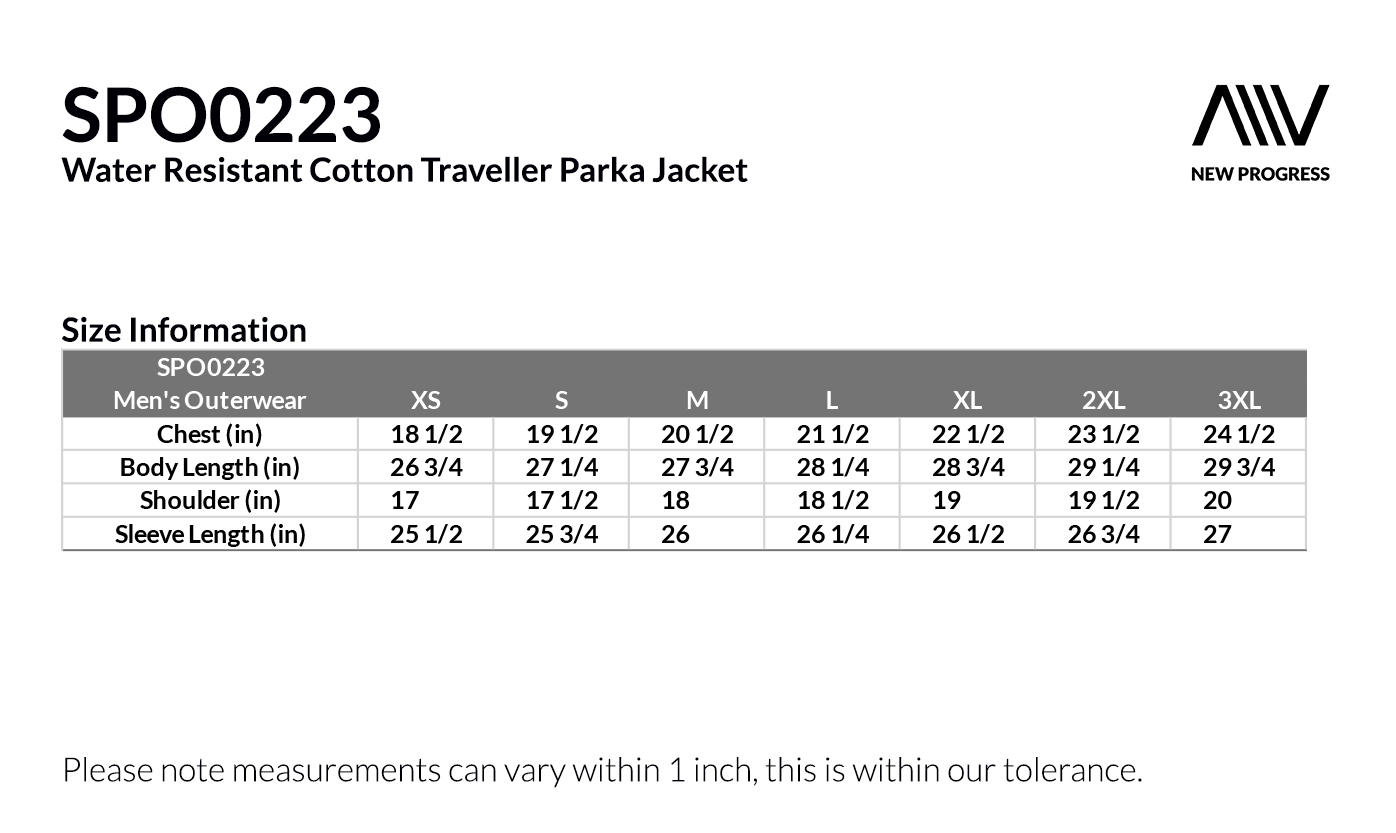 SPO0223 - Water Resistant Cotton Traveller Parka Jacket - Army