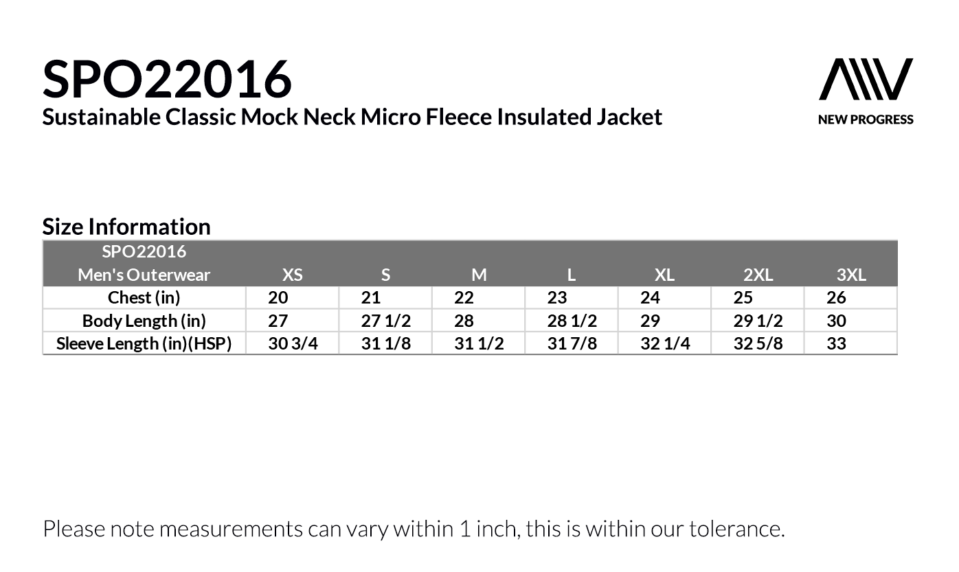 SPO22016 - Sustainable Classic Mock Neck Micro Fleece Insulated Jacket - Black