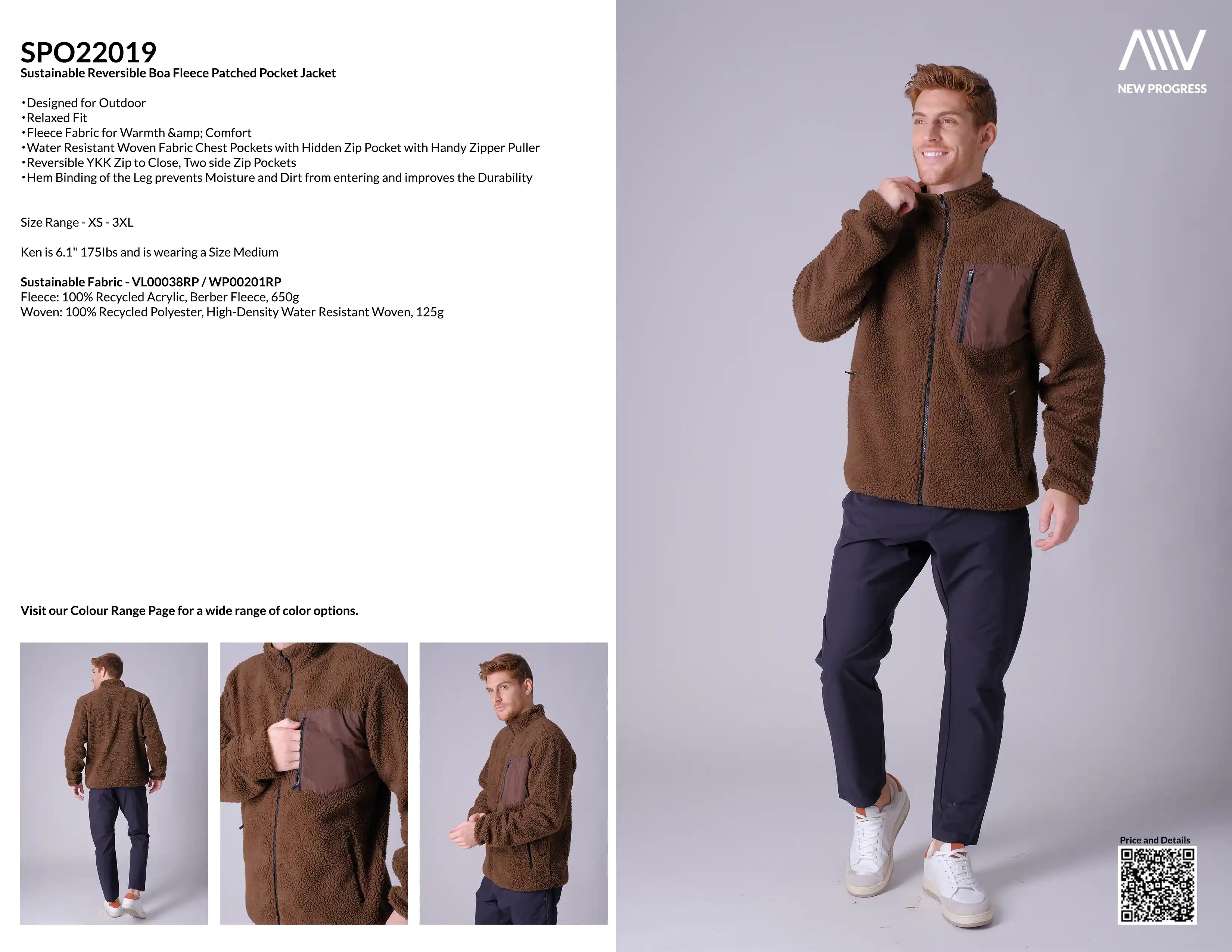 SPO22019 - Sustainable Reversible Boa Fleece Patched Pocket Jacket - Brown