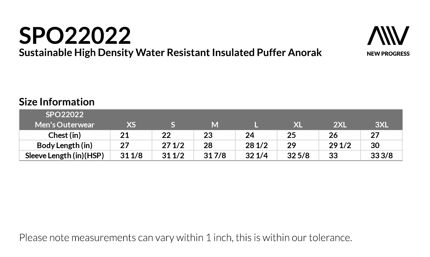 SPO22022 - Sustainable High Density Water Resistant Insulated Puffer Anorak - Navy
