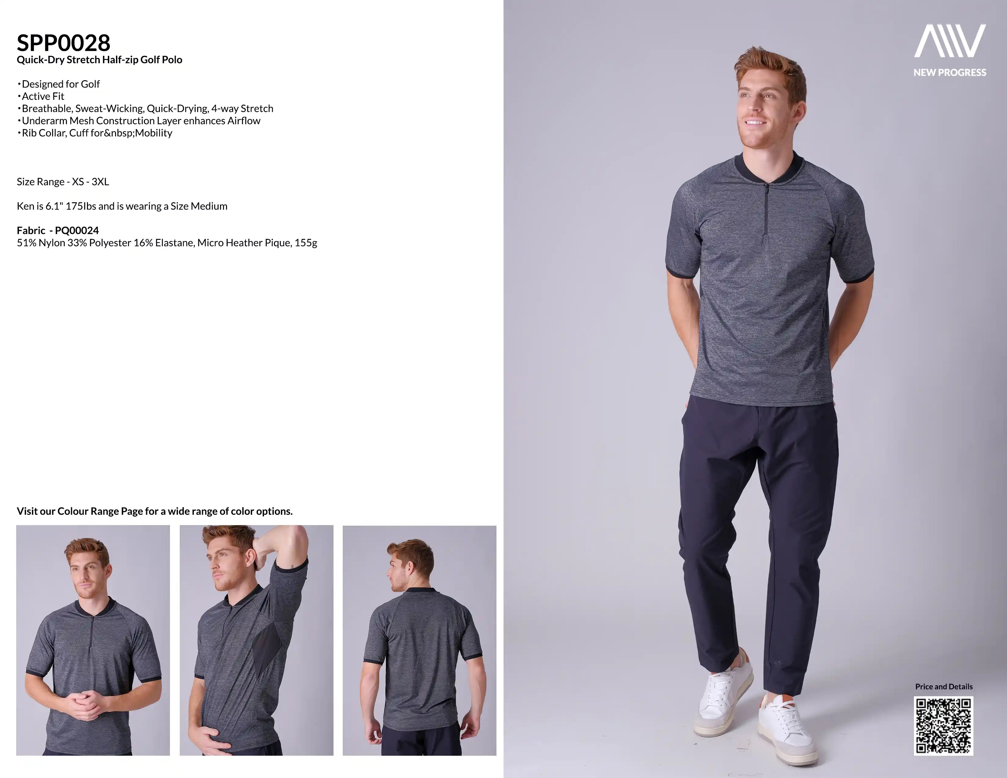 SPP0028 - Quick-Dry Stretch Half-zip Golf Polo - Heather Black