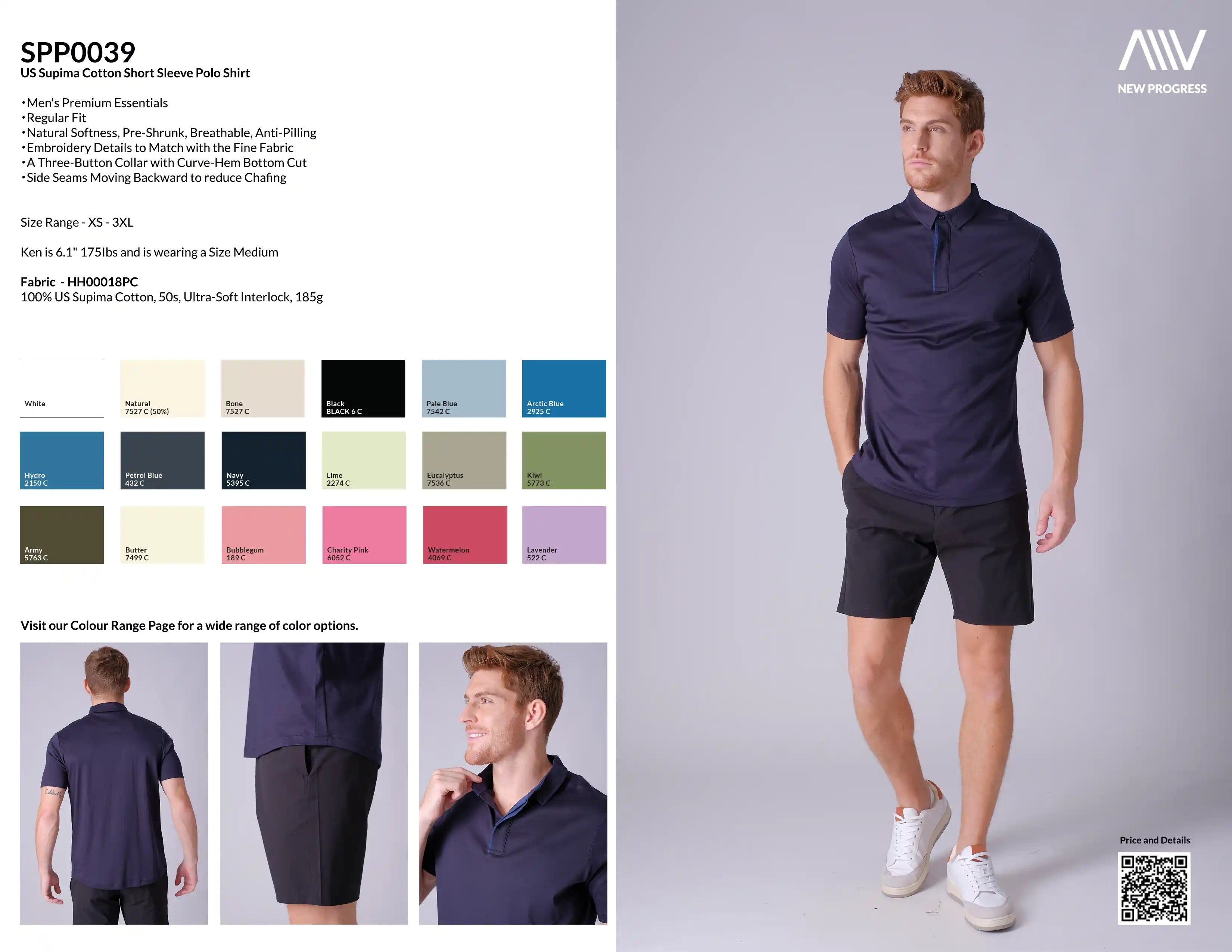 - 100% US Supima Cotton, 50s, Ultra-Soft Interlock, 185g