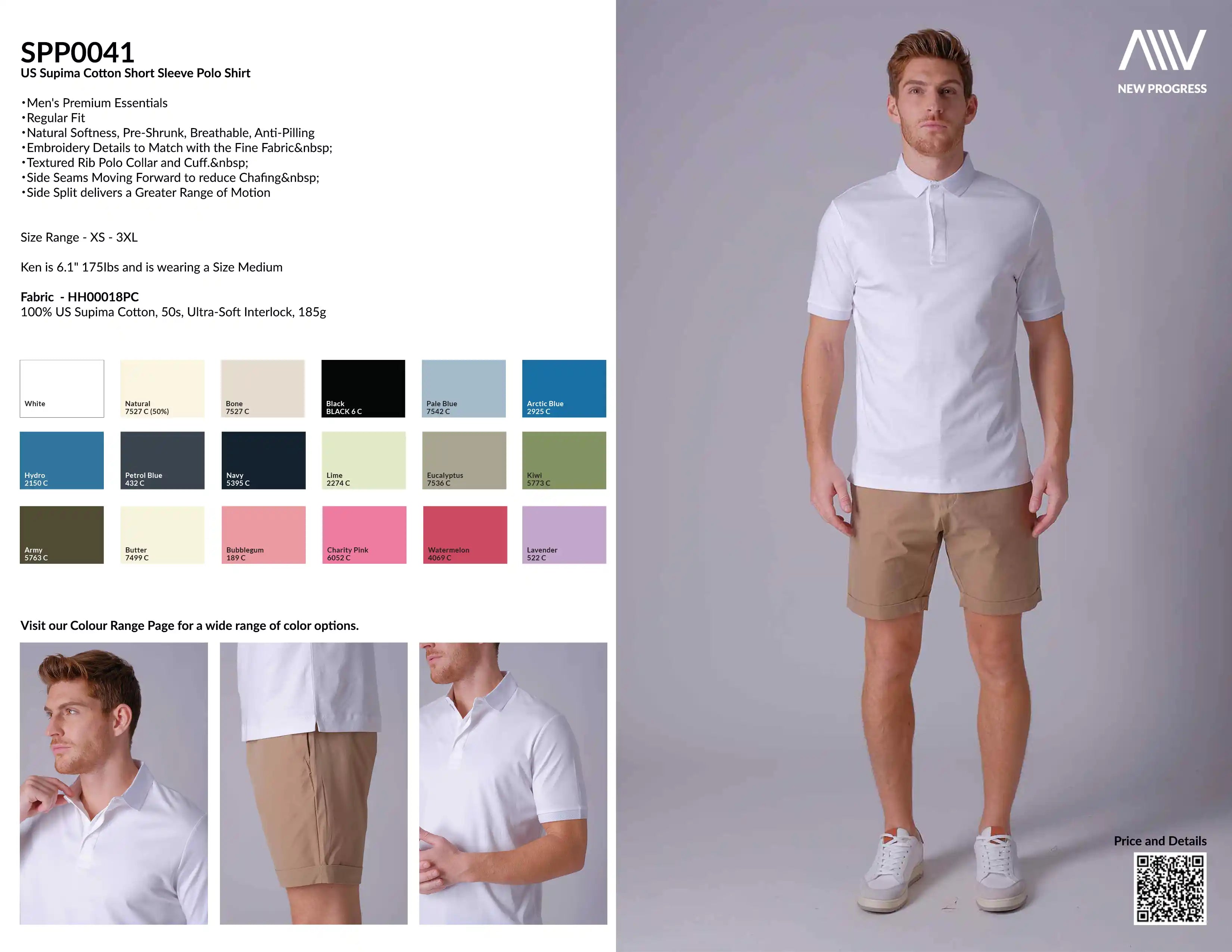 - 100% US Supima Cotton, 50s, Ultra-Soft Interlock, 185g