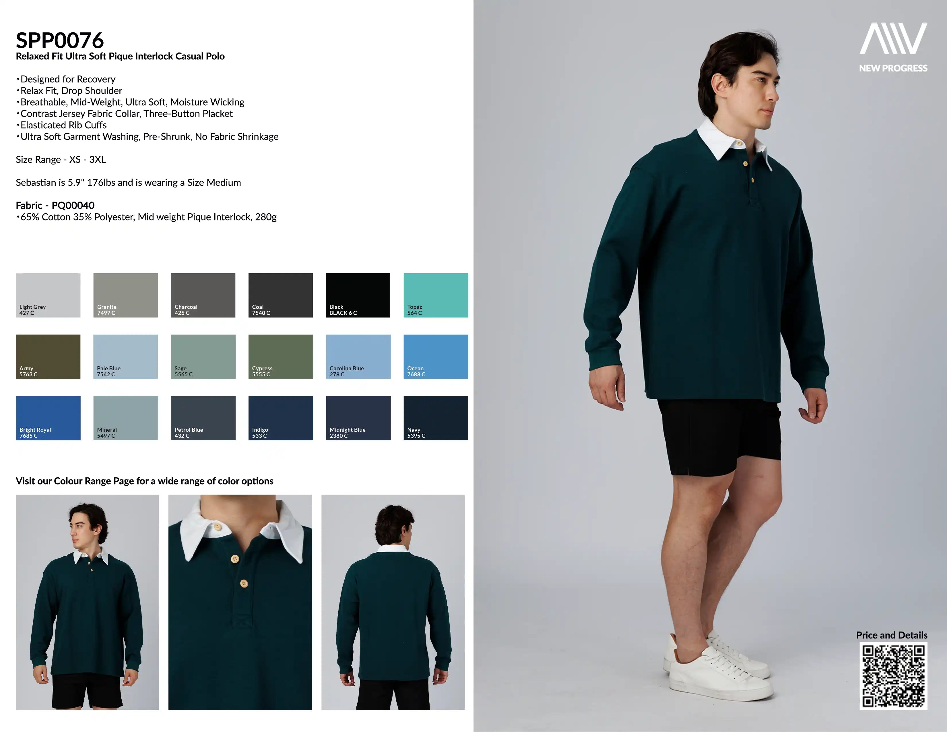 ・65% Cotton 35% Polyester, Mid weight Pique Interlock, 280g