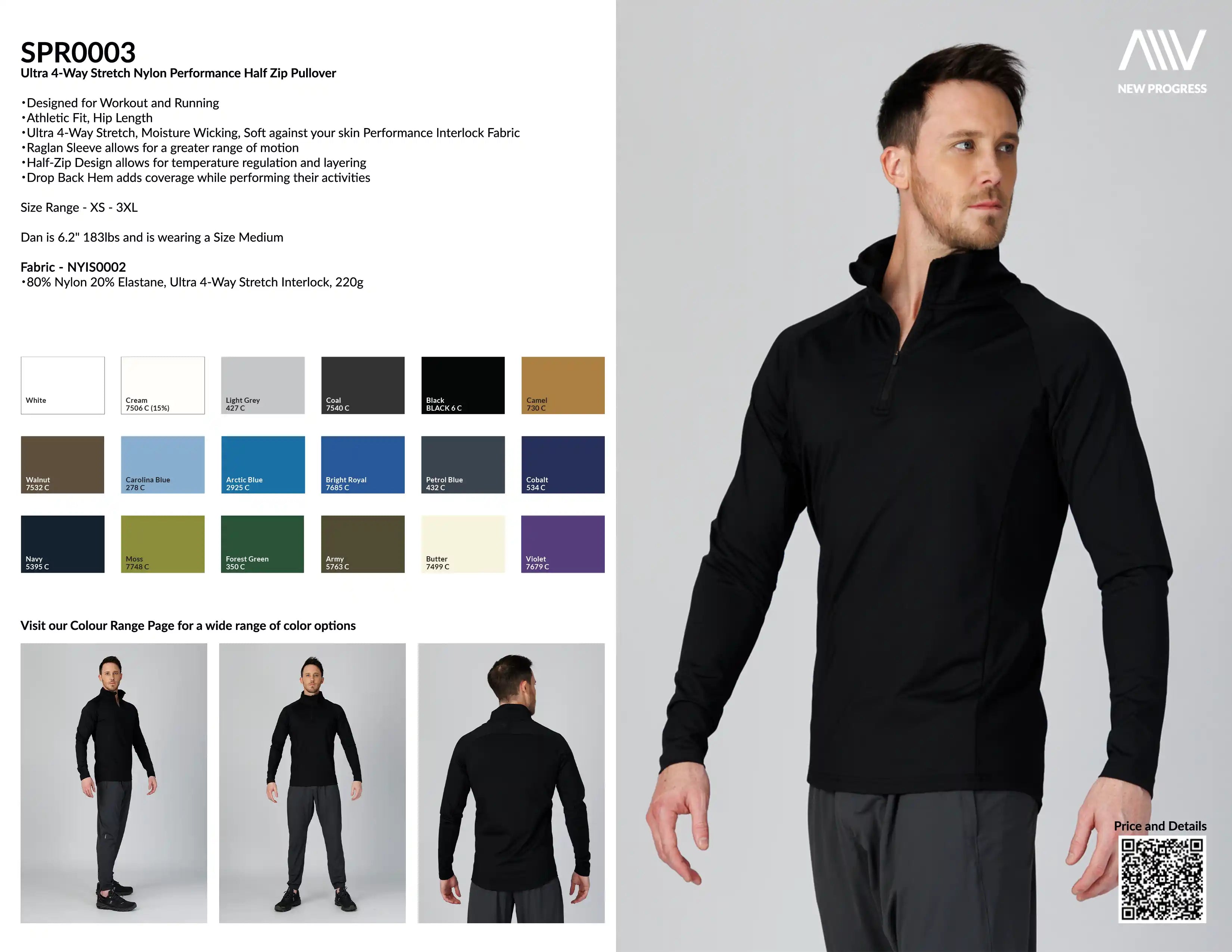 SPR0003 - Ultra 4-Way Stretch Nylon Performance Half Zip Pullover - Black