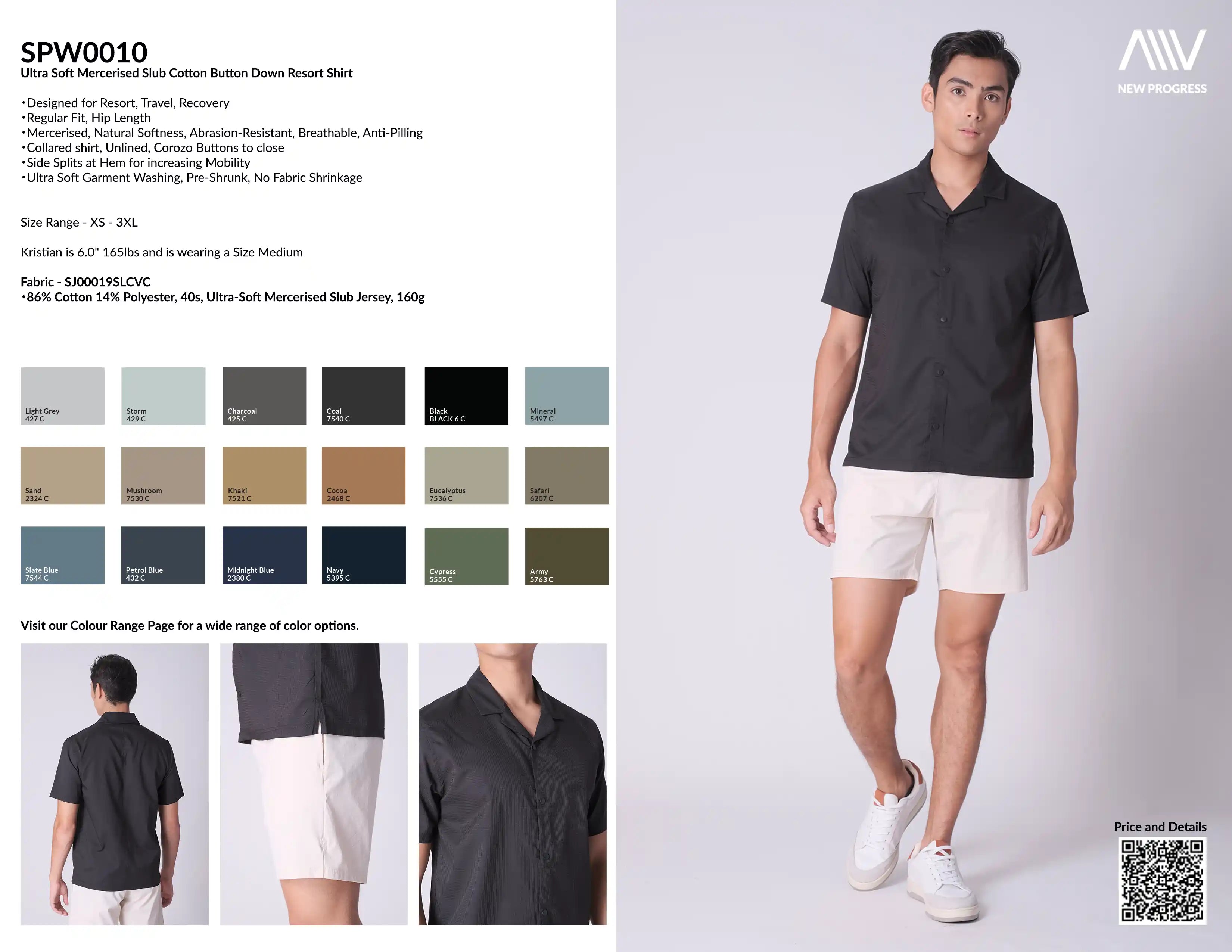 SPW0010 - Ultra Soft Mercerised Slub Cotton Button Down Resort Shirt - Mid Grey